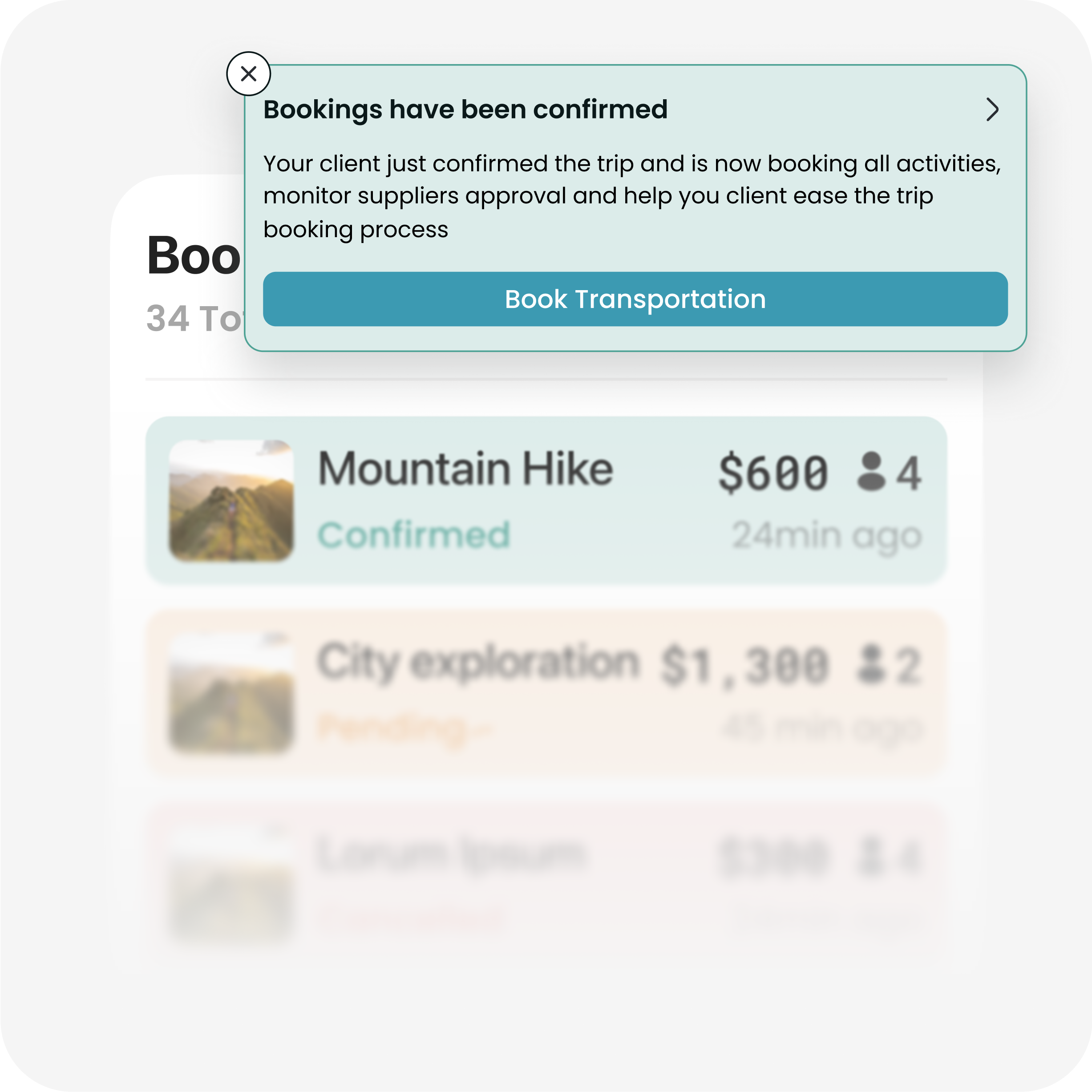 Instantly generate bookable, personalized itineraries across flights, hotels, activities, and transport.